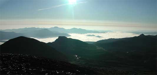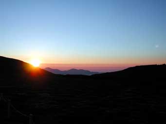 不思議に思い訪ねてみると、お鉢の中の熊の移動を調査しているとのこと?熊?なんでこんな所に熊がいるんだろうか?と思いましたが、数頭いるようで、熊は夜行性なのでこの時間に観察しているのだそうです。「ふむぅ」と感心しながらしばらく付き合いましたが、確認できずでした。