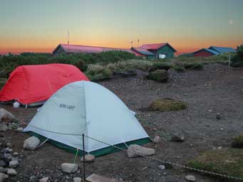 23日夜半から風が強くなり、テントが強風で変形しし始め床も浮き上がるようになり始めた。寝ていられず状態ではないので、朝食以外の物をパッキングし、ゴアのカッパを着て仮眠を取り、太陽が昇る少し前に朝食を取り、早々にテントをたたまずにパッキング後下山を開始するが、体感的に45°程身体を傾けないと前に進めないほどだった。何時に下山したか記録にない。