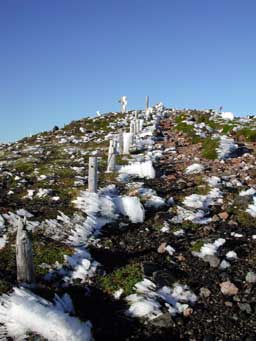 北鎮岳には5:50に着きましたが、エビの尻尾が見られました。歩いているから寒さを感じていませんでしたが、8月23日にこの様子とは・・・・。後で判ったことですが、この日はあちらこちらの山で積雪を観測したそうです。