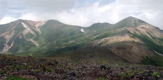 愛別岳から比布岳方面の写真ですが、ここから見える比布岳から愛別岳への尾根までの降り口がとても危険に感じました。尾根そのものは問題有りませんでした。