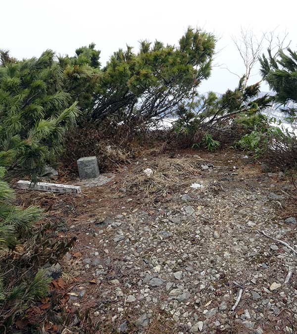 山頂には三角点があり、その脇にには薄くカタカナで山名が書かれたプレートが横たわっていた。