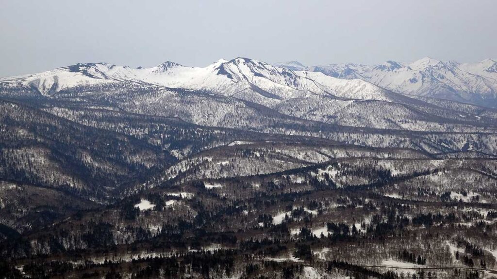 山頂からは、比麻良山やニセイカウシュッペ山の向こうに表大雪の白雲岳や比布岳などが見える。