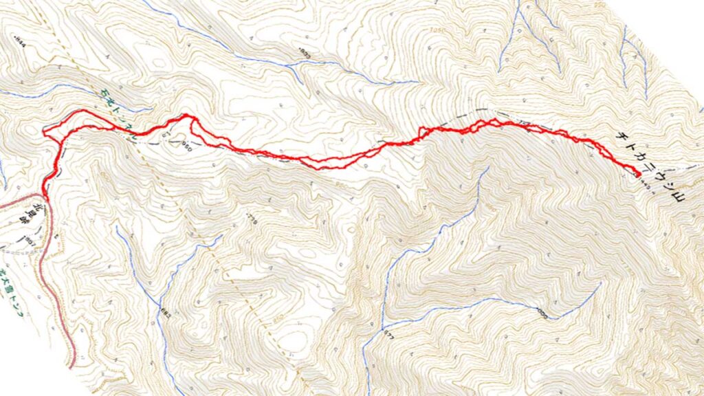 チトカニウシ山には夏道がないので北見峠から登ることとなった。左の写真が登り口となり、950mにある無線施設まで道路が続いているのだが、行は途中から道路を外れショートカットてみたものの再度道路戻り、無線施設へは向かわず山頂に向かった。