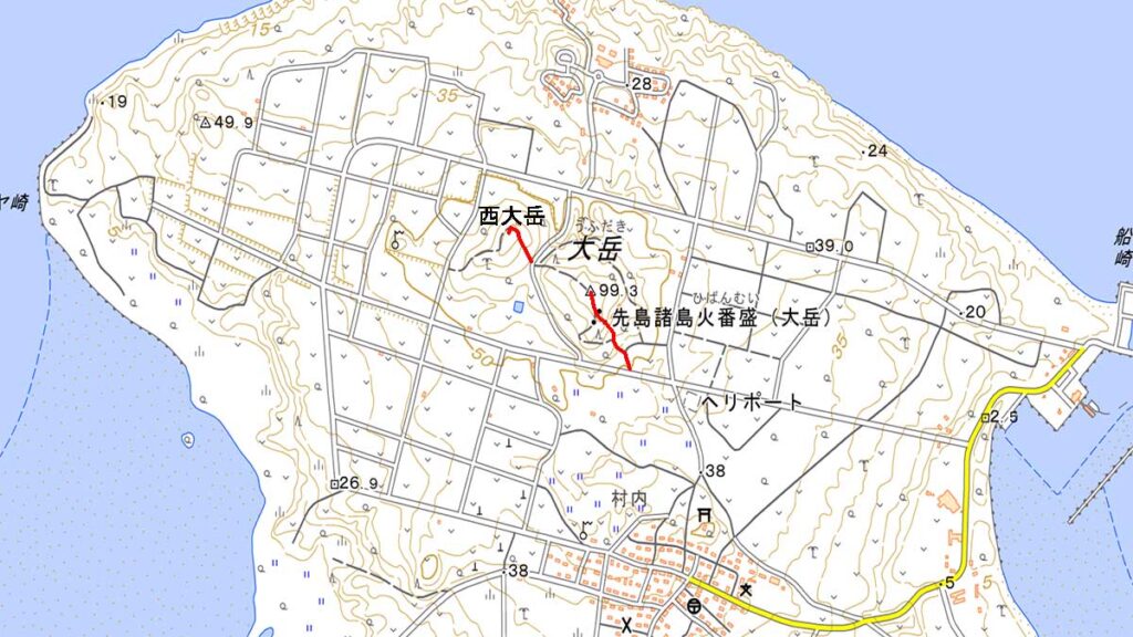 大岳(うふだき・99.3m)・西大岳(にしうふだき・90.0m)は、小浜島の北側にあり、それぞれに展望台があります。