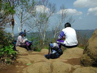 山頂は灌木がはえていてそれほど広くはないが、平らで休憩には十分な広さである。